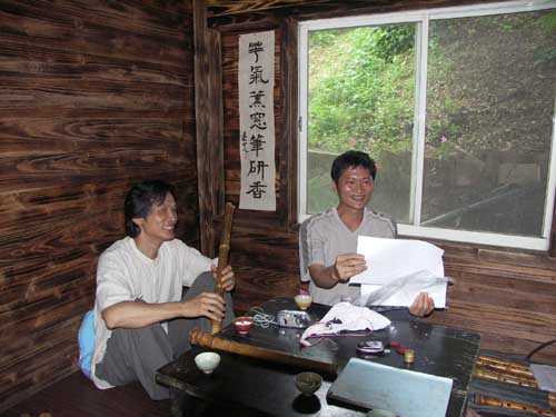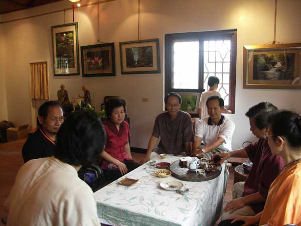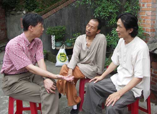 與統一蘭陽文化公司總經理(左)聊起傳藝中心的活動.