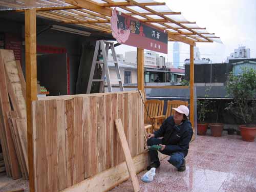 今天最新進度已配電配燈完成,木工剩屋頂遮陽組裝還有一半,已接近完工階段!
