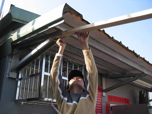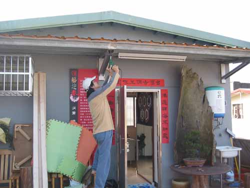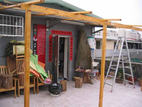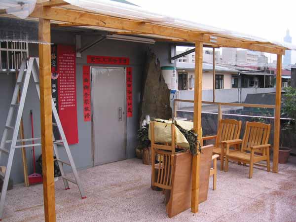 成牆,感覺更佳!日後再將茅草更替塑膠布,更添古樸意味!