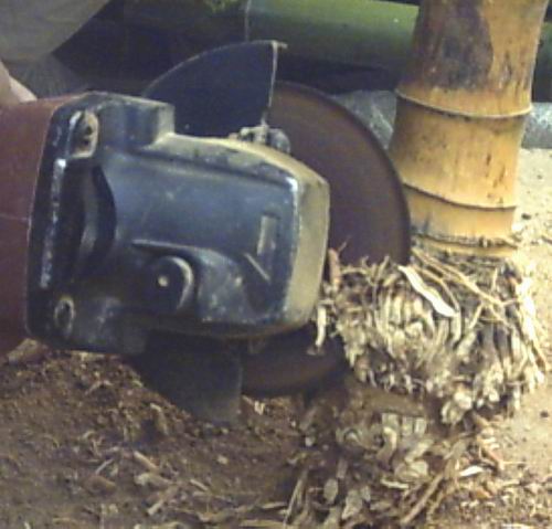 用沙輪機修帶土石竹根很方便,但很危險
