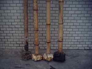 這是已把鬚根修除的,因未調直,暫不鋸掉竹頭。