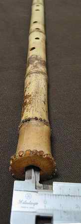 出音孔橢圓,長約1cm,0.7cm寬.音孔大小不一,5mm-8mm,基音孔距離61cm.