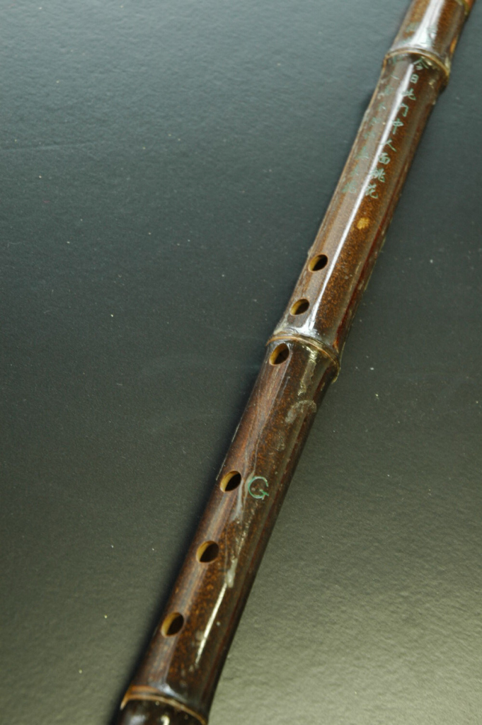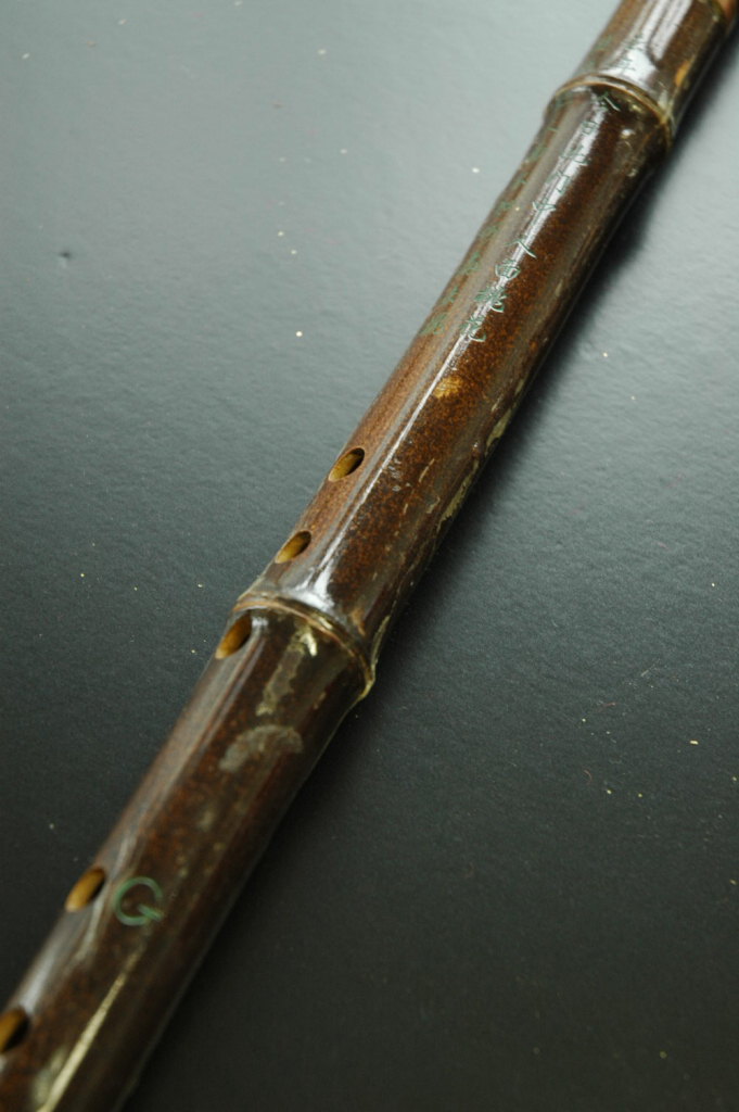 一 般 而 言,此 等 簫 通 常 都 是 用 了 較 次 的 竹 材,其 主 要 缺 點 是 纖 維 疏 鬆、因 此 不 能 抵 受 風 寒,容 易 爆 裂,製 作 者 塗 上 亮 漆 既 可 以 掩 飾 其 纖 維 疏 鬆,同 時 令 外 貌 更 亮 麗,增 加 其“可 賣 性”。附 圖 是 一 例 子,可 見裂 縫 處 處…