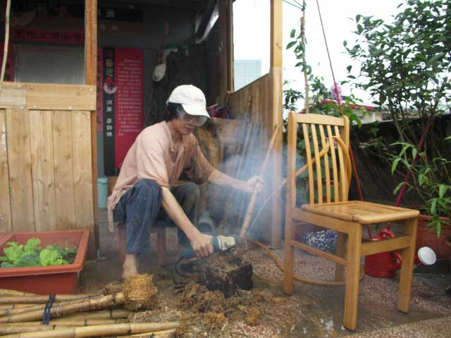 從深山上的竹子到成為簫材,堅硬的竹根是比較難周旋的部分,