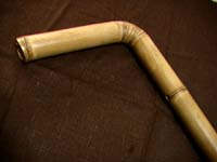 接續四尺長簫的完成,將今年初所採最後一支,一直考慮中未動手的大型竹才,再製成彎曲管簫,這支完成後有三尺長,筒音F,比初完成的彎管簫小了一些,並將彎管部分縮短,以五環接成,彎曲角度略大些。