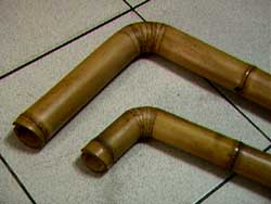 彎曲的部分最後以七段環節銜接成彎曲曲線,並作內徑處理,重點在其銜接上的內徑維持與平順,以利聲波的傳遞,其彎曲平順度影響低八度的效果,需要圓滑曲線才能維持原來效果。