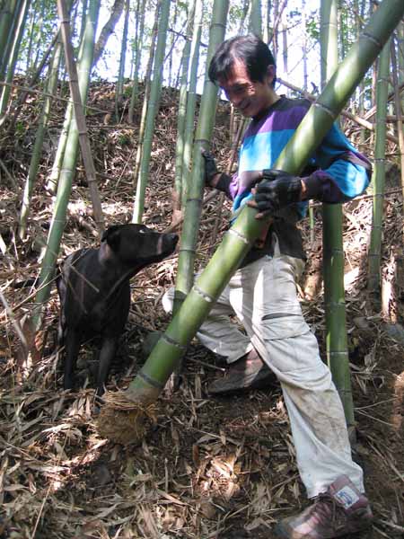 說做就做,是日風和日麗,文松、老婆及家養台灣土狗(烏ㄟ)一行三名,入深林尋巨竹。