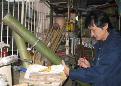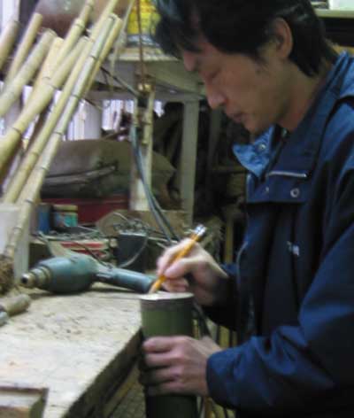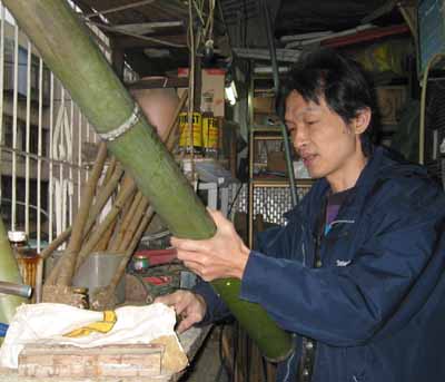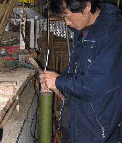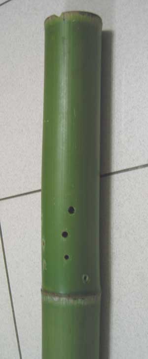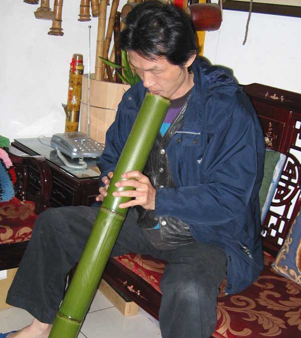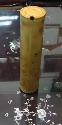 話說採製巨簫時,多預留一段備用竹段,用於吹口封頂用竹節薄片,剩餘之材料不忍棄之,乃製一竹埙