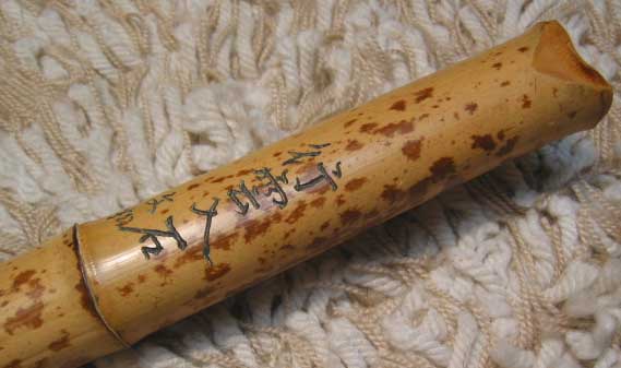 DG_U吹口,中型內徑(1.8cm),超老硬竹材,有生漆,此簫已出讓. 銘刻:明月流溪 試吹曲 幽思